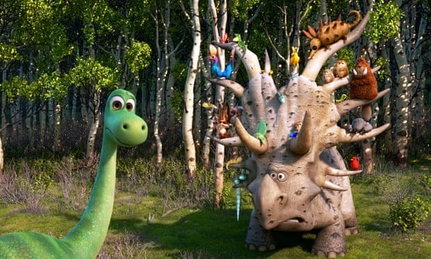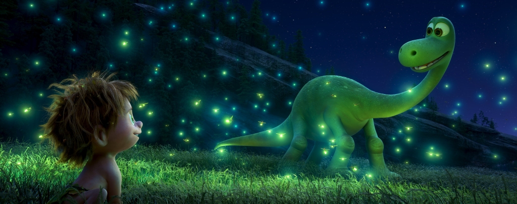 So, whose extinction is this, anyway? Not anyone’s, as far as this quietly hopeful movie is concerned. In its outlines “The Good Dinosaur” spins a familiar tale in a boy’s own story that’s shaped by the usual highs and lows, frowns and smiles, with heart-swelling triumphs and even some Boy Scout-style bivouacking when Arlo builds a shelter out of trees. Except that here the boy is a talking agrarian dinosaur, who, after his calamitous separation, encounters a howling, snarling, scrambling, barking, nontalking human wild child who quickly becomes Arlo’s faithful companion whom he names Spot (Jack Bright, a squalling a cappella orchestra of one). And, just like that, in the beginning there was a dinosaur — followed by a kid scampering after him on all fours.