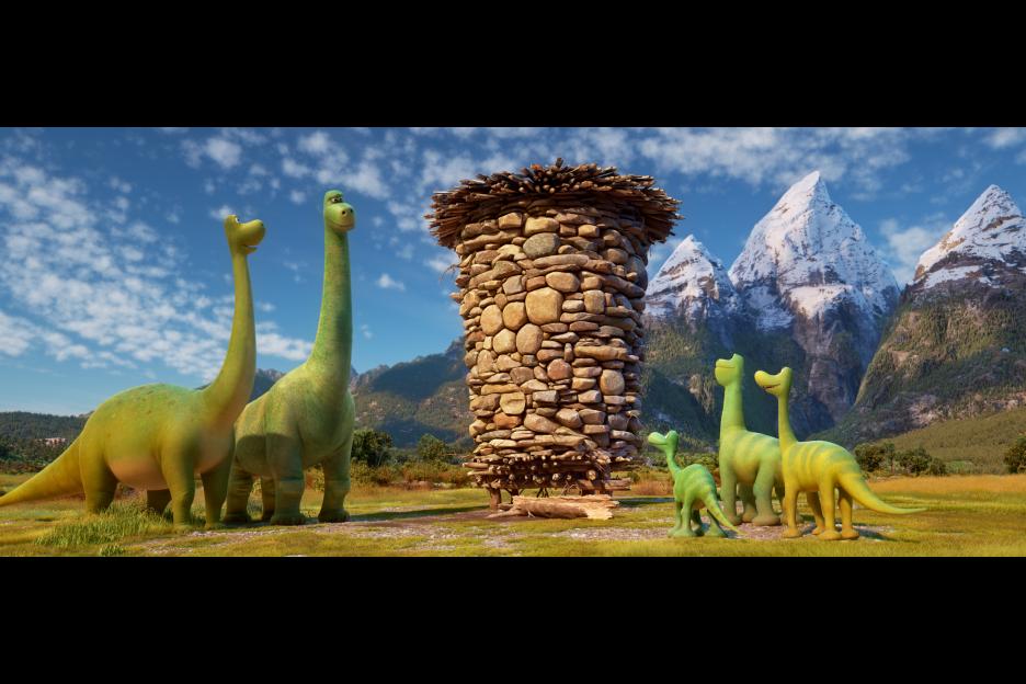 Blink and you may miss the sly joke that sets “The Good Dinosaur” on its enchantingly eccentric way. It begins with a near apocalypse 65 million years ago and an asteroid racing toward Earth. And while that’s around the time, more or less, that science hypothesizes the dinosaurs bit the dust, the wizards at Pixar have forged another creation story. Instead of crashing, the space rock zips past the big blue marble. Fast forward a few million years to what looks like the American Northwest, where two apatosaurs are farming the land, tilling the soil with honest sweat and giant noses.
