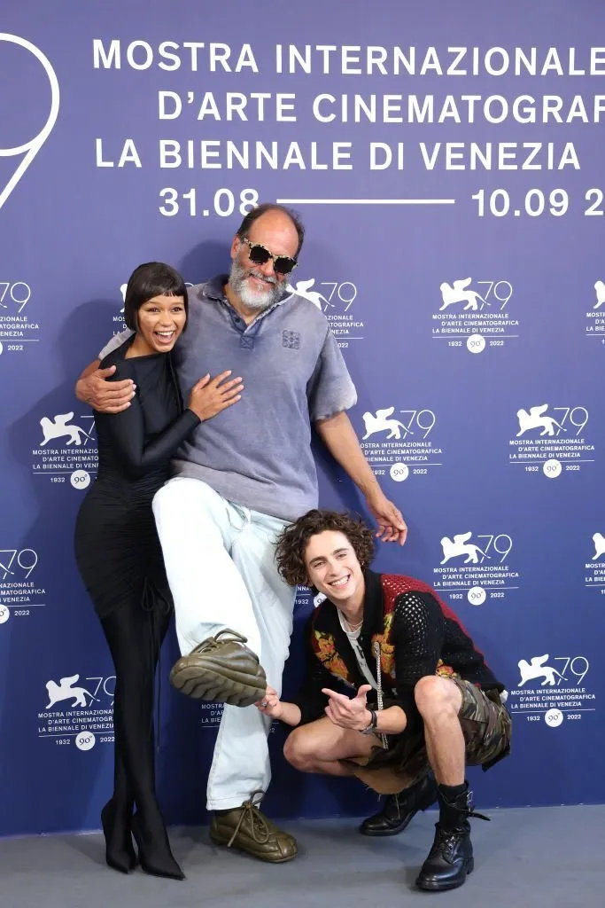 Timothée Chalamet, Taylor Russell, Mark Rylance, Chloë Sevigny, Luca Guadagnino at the photocall of ‘Bones & All’ at the 79th Venice International Film Festival