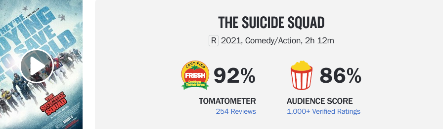 Related Post: “The Suicide Squad” starts at 98% on Rotten Tomatoes.