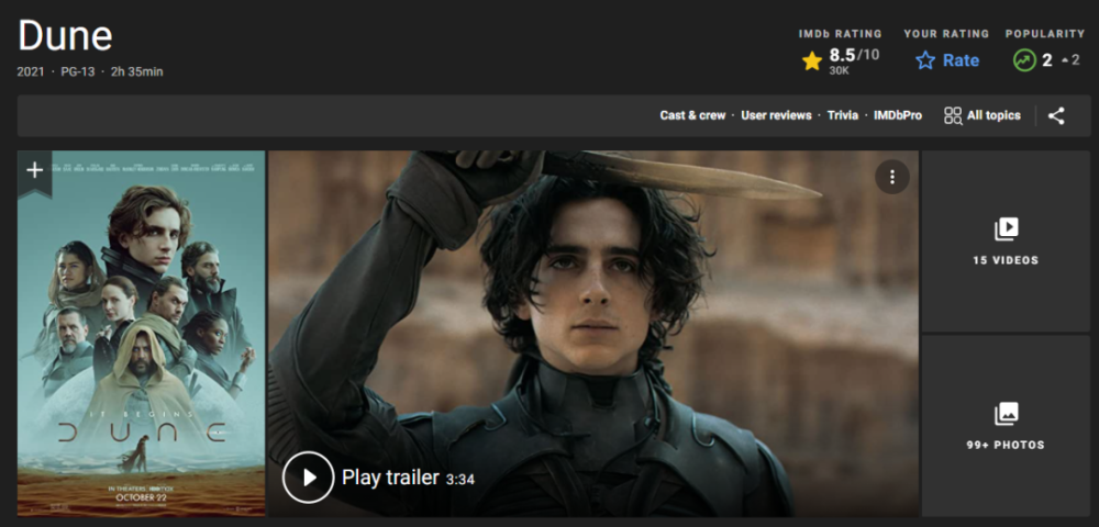 “Dune” also got a high score of 8.5 from more than 50,000 viewers on IMDB, which has a very demanding score.