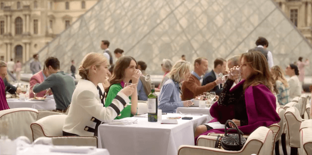 Sitting in front of the Glass Pyramid for dinner is really the style of “Emily in Paris”…