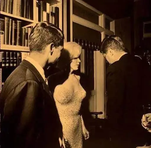 This is the only surviving photograph of Monroe and the Kennedy brothers, taken when John Fitzgerald Kennedy received Monroe on the day of his birthday party.