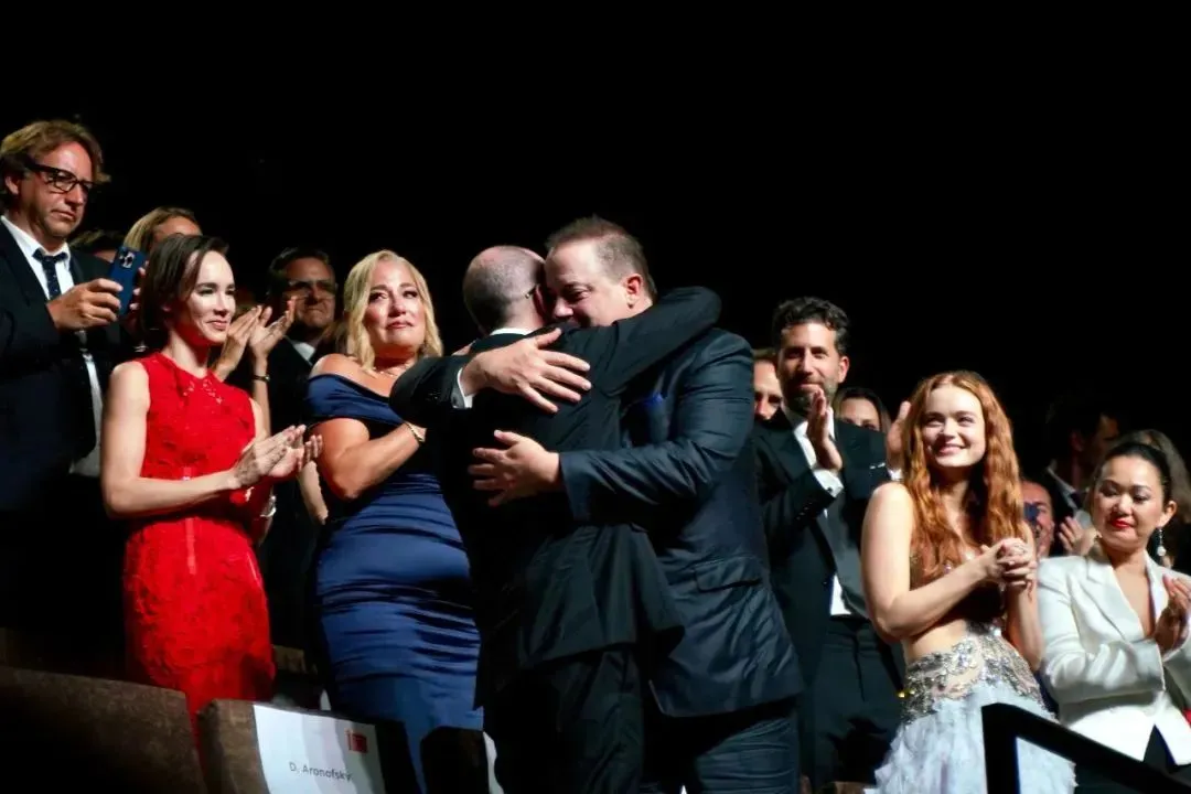 At the premiere of ‘The Whale’, Brendan Fraser embraced director Darren Aronofsky, who bowed deeply to the audience.