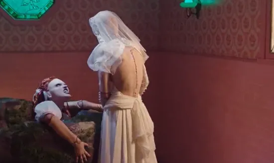 American Horror Stories Season 2′ is a spin-off of the IP “American Horror Story” series. The poster shows a man holding a bride horror figure, highlighting the theme of the season.