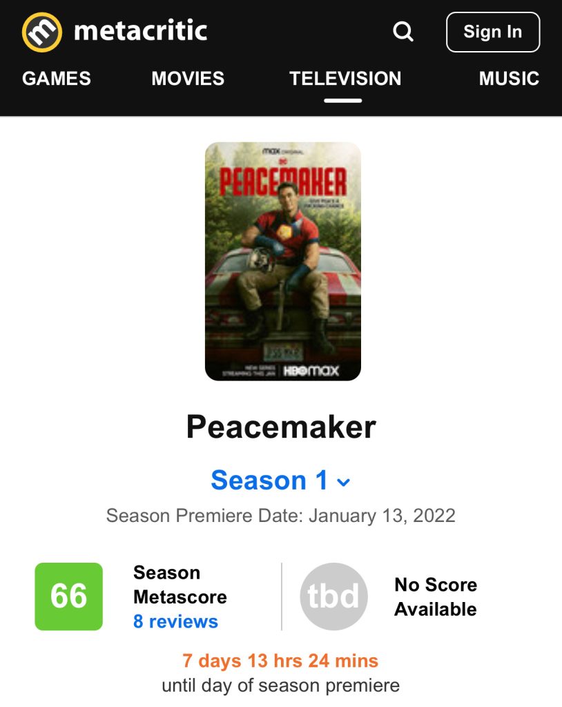 HBO Max’s new drama “Peacemaker” has scores on two major film review sites: Rotten Tomatoes has a fresh start of 90%, 10 reviews, 9 fresh and 1 bad; Metacritic site 66 separates, 4 good reviews, 4 medium reviews and 0 negative reviews.