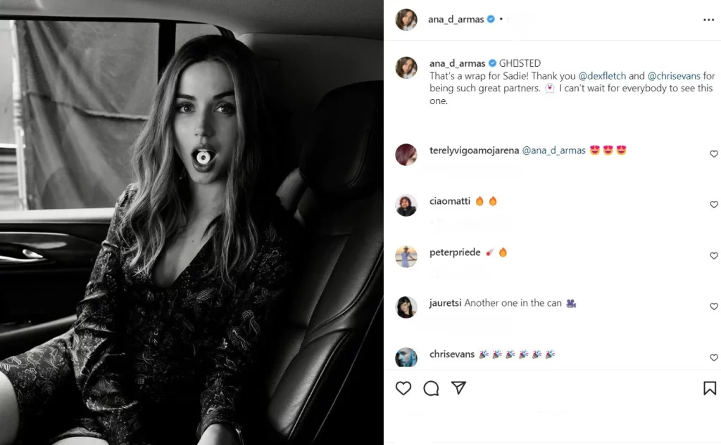 Related Post: ‘Ghosted’ reveals Chris Evans and Ana de Armas kiss scene video and set photos.