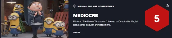 ‘Minions: The Rise of Gru’ media rating is officially unblocked, IGN today gave the film a 5 out of 5 rating.