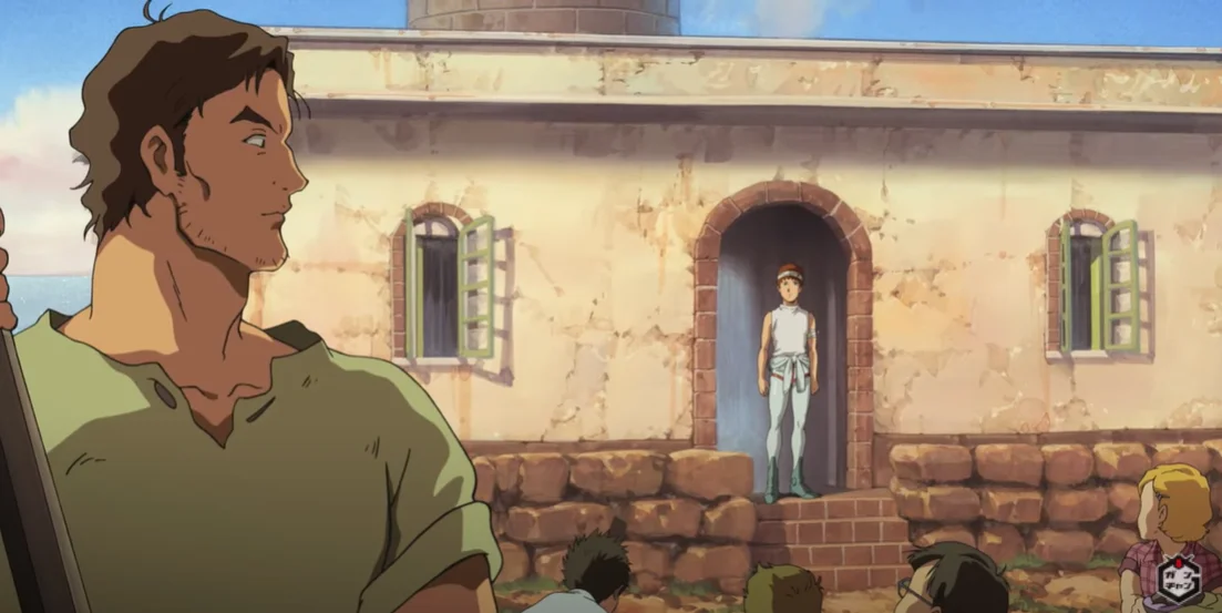 “Mobile Suit Gundam: Cucuruz Doan’s Island” is directed by Yoshikazu Yasuhiko, scripted by Nemoto Toshizou, and mechanically designed by Kunio Okawara and others.