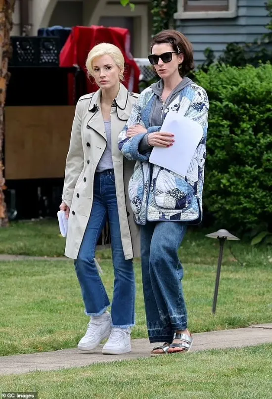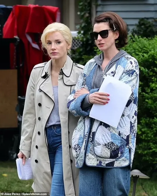 Anne Hathaway and Jessica Chastain co-starred in the new film “Mothers’ Instinct” is being filmed, the latest road show revealed that the two beauties are walking hand in hand, take a look.