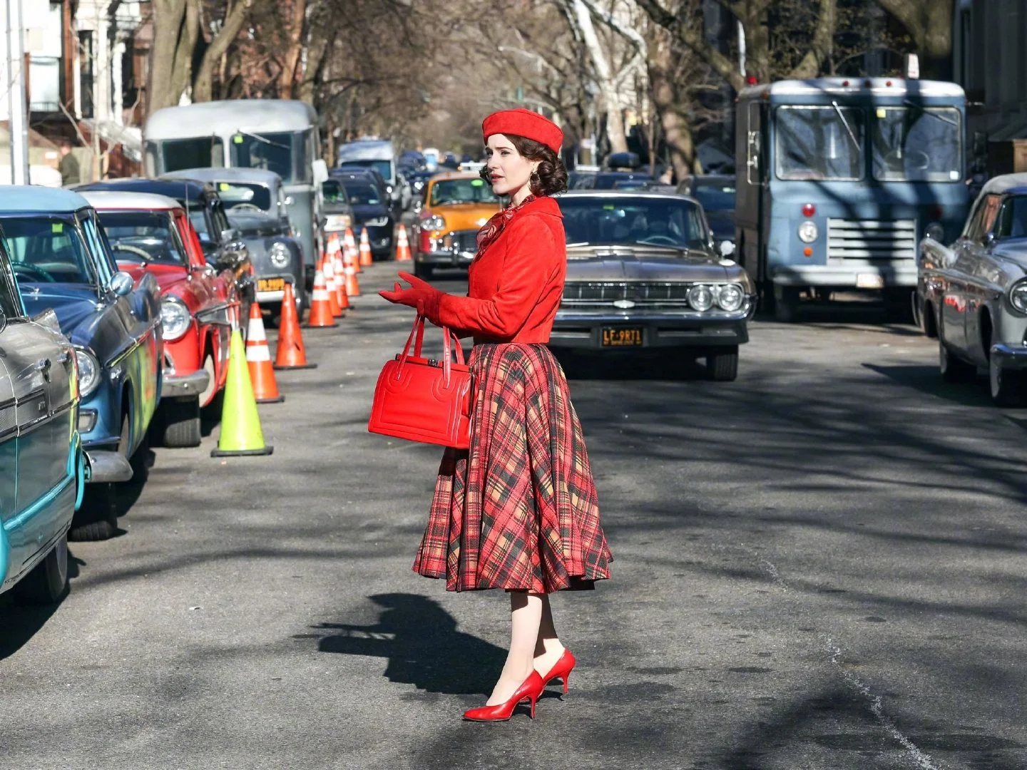 Rachel Brosnahan filming “The Marvelous Mrs. Maisel Season 5” in Central Park, New York.