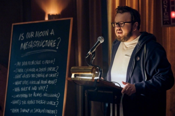 Stephen Bogaert plays a weird genius who infers that the moon is out of its orbit.