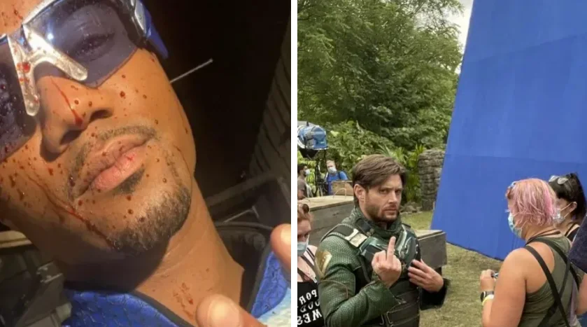‘The Boys’ revealed two set photos of A-Train and Solider Boy, A-Train wearing the old version of the battle suit a face of blood, the new season’s battle will certainly be more intense.