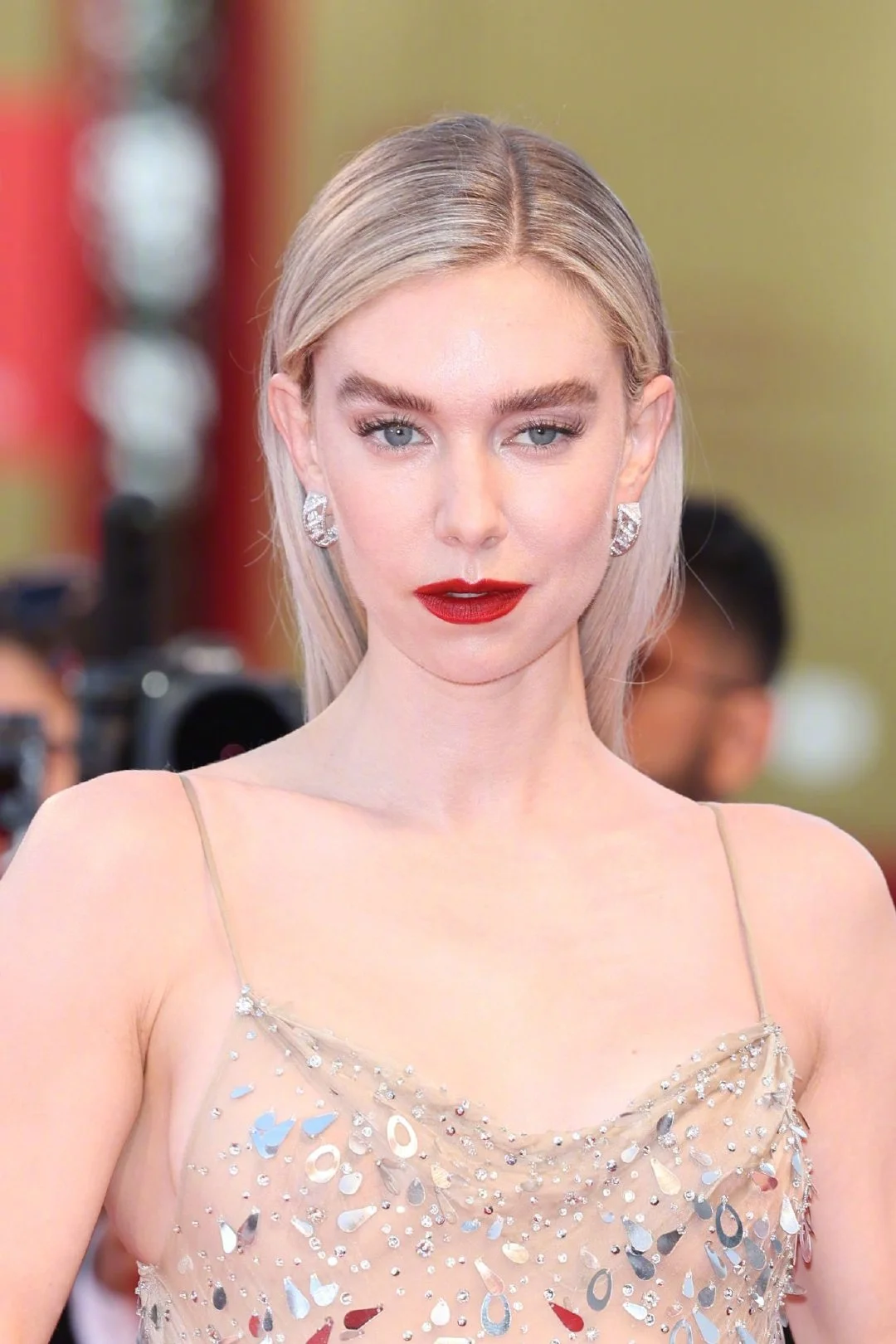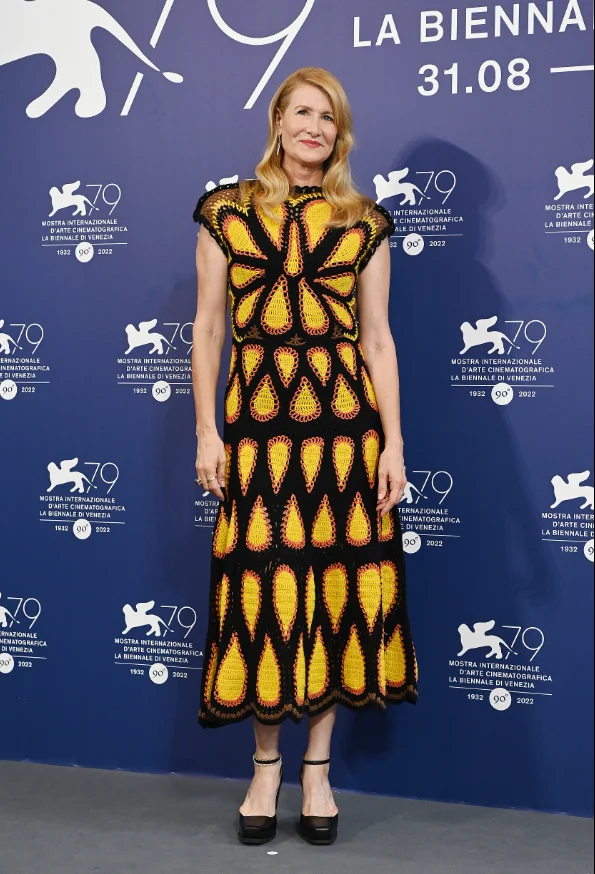 Vanessa Kirby shone on the red carpet in a sequined dress, paired with a blonde red dress, full of aura and glamorous atmosphere. Oscar’s best supporting actress Laura Dern appeared in a low-key dark blue dress, full of elegance.