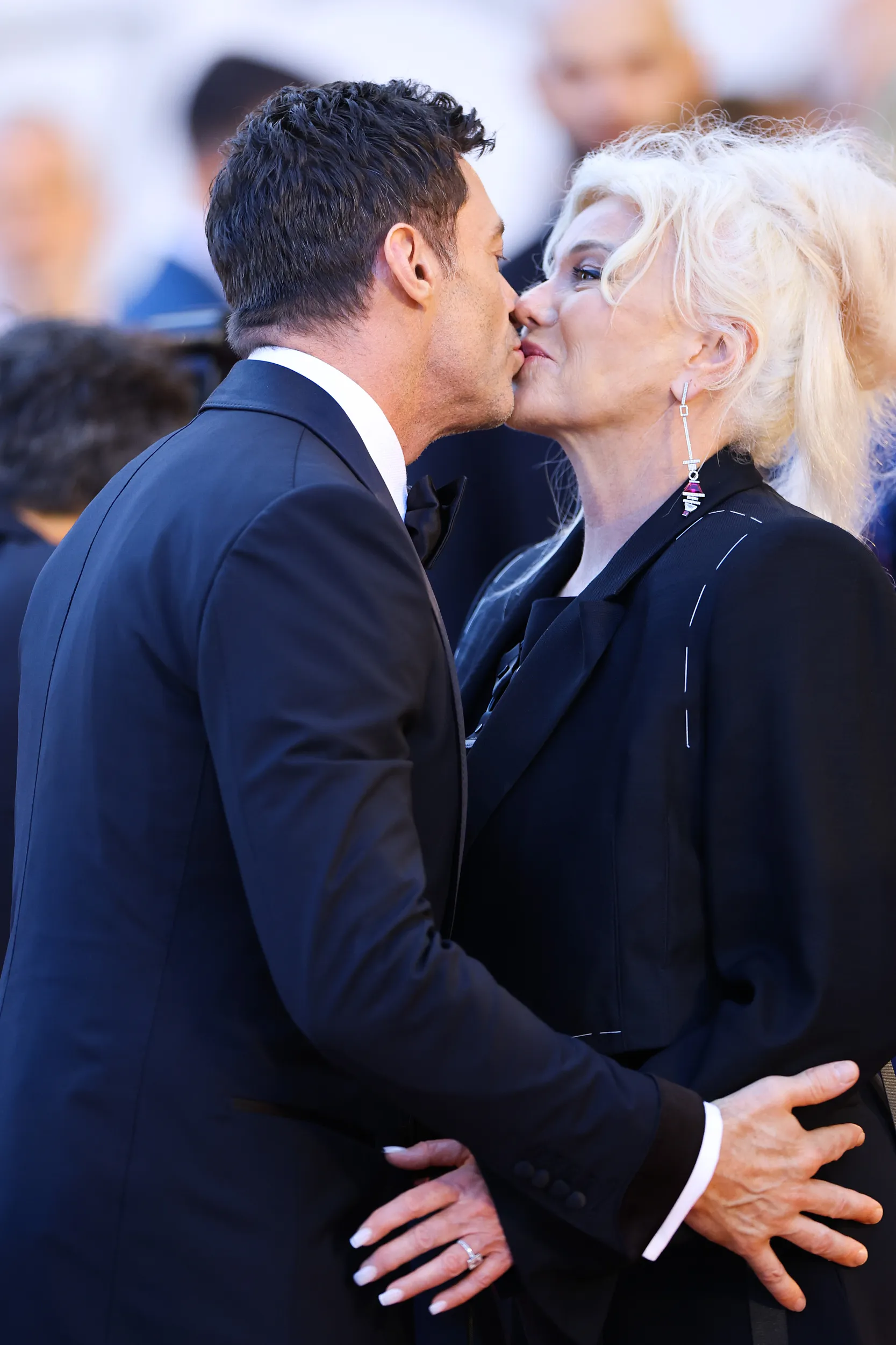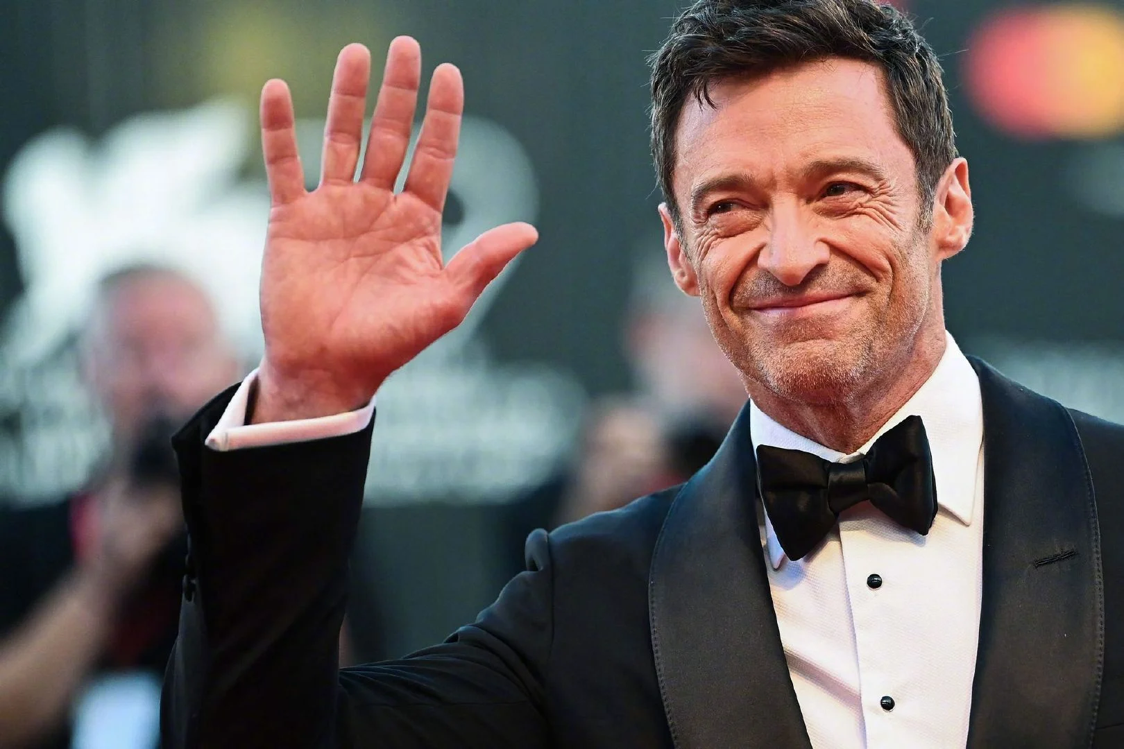 On the same day, Hugh Jackman appeared in a black formal suit, handsome and stylish, and his wife Deborra-Lee Furness also appeared together. The two kissed affectionately on the red carpet and showed their affection.