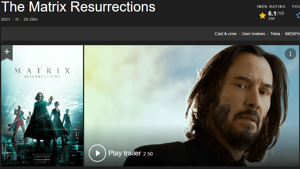 The score of “The Matrix Resurrections” on IMDb dropped sharply, from 7.0 to 6.1. More than 20,000 people participated in the score.