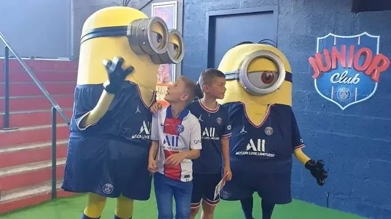 Minions dressed in Paris Saint-Germain uniforms to interact with young fans For example, in France, Minions hitched a ride with the Paris Saint-Germain team to interact with soccer star Neymar.