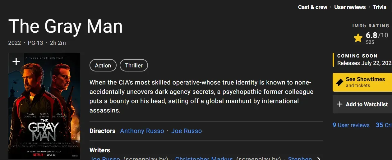 Related Post: ‘The Gray Man’ only 5 on IGN: It’s a waste of an All-Star lineup.